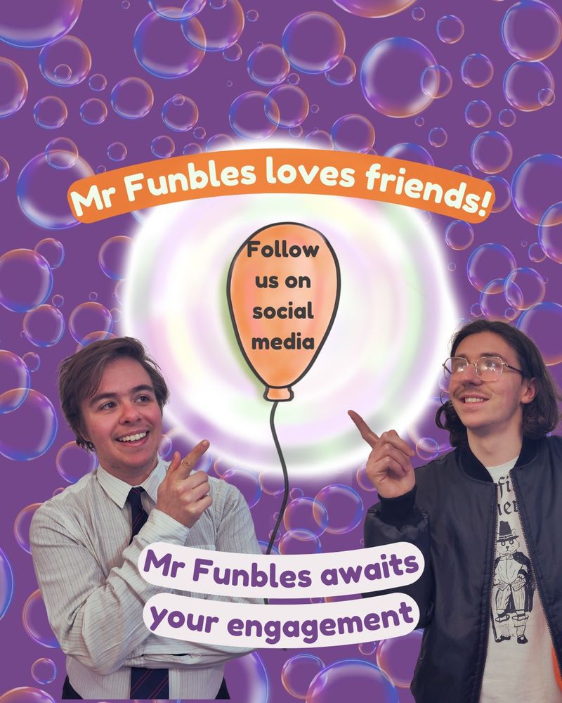 You can come and watch Mr Funbles at @alphabettitheatre.bsky.social on Saturday 6th December. Doors at 7.15pm for the pre-show experience. Pay what you feel tickets!