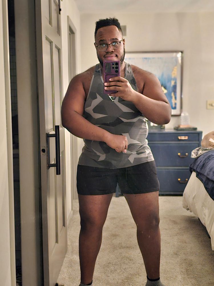 Black shorts were when I started, blue was from today's post push day.