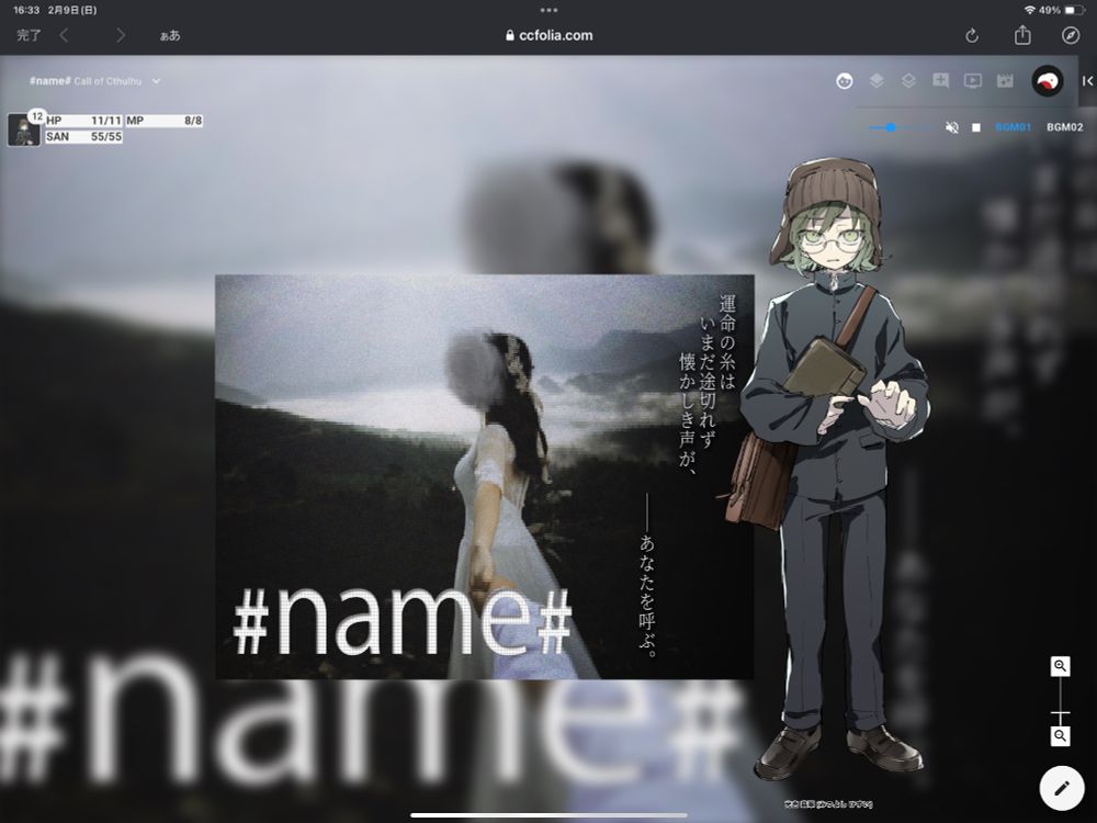 技能値が全体的に低い子での挑戦(温情感謝です🥲)、出目がめちゃ悪くてボロボロになってたけどPLも一緒に振り切ったり壊れたりしながら楽しくなれました、今こういう状況で〜ってさっと教えてくれる二魚さんすき