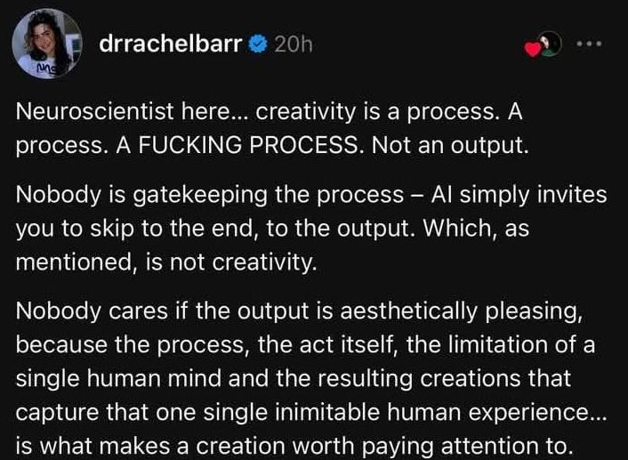 Been thinking a lot about this lately and found this quote - which nails my own feelings I get when I find AI generated images or videos.