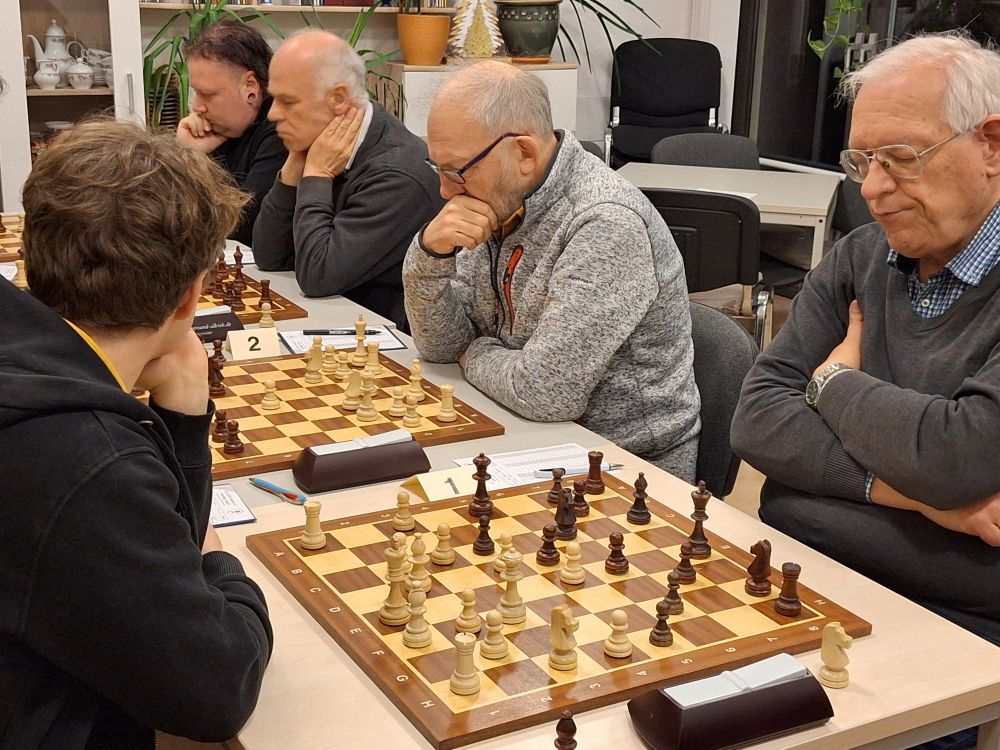 NARVA 3 liegt früh 0:1 zurück, Detlef kann dann ausgleichen zum 1:1. Nachdem Gerhard an Brett 1 verliert, versucht unser Präsident irgendwie noch zu Punkten, verliert dann aber auch noch zum 1:3 Endstand.