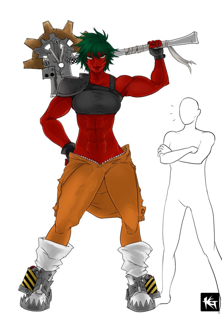 Still deciding on a class, but love how she turned out! Wearing her magical glasses to protect from sunlight sensitivity and always carrying enough junk to build plenty of traps!