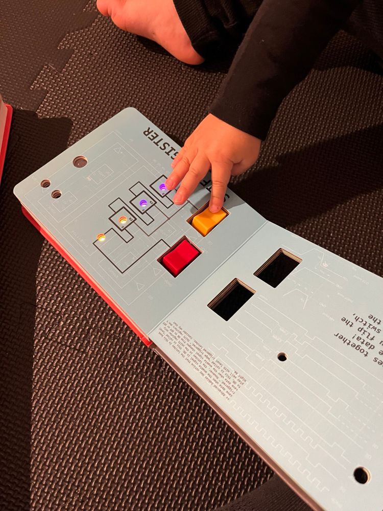 子、ついにComputer engineering for big babiesのスイッチも押せるようになった〜!!天才では!?🤭🤭