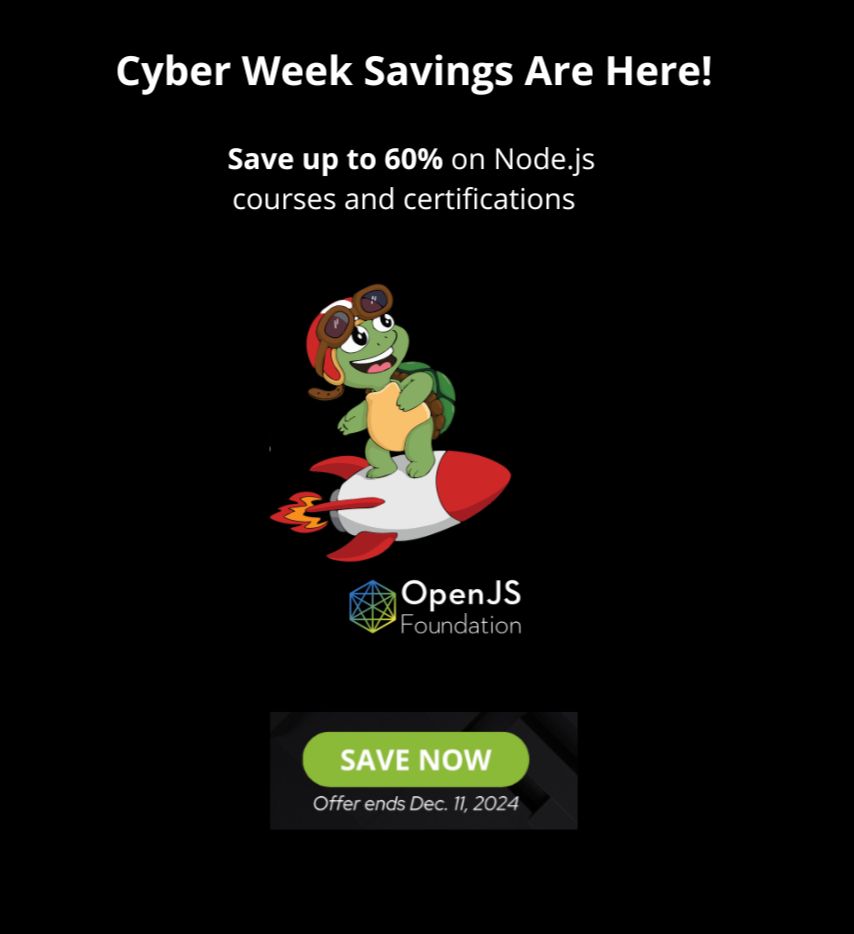 A couple more days to save on Node.js training and certification 🚀🐢