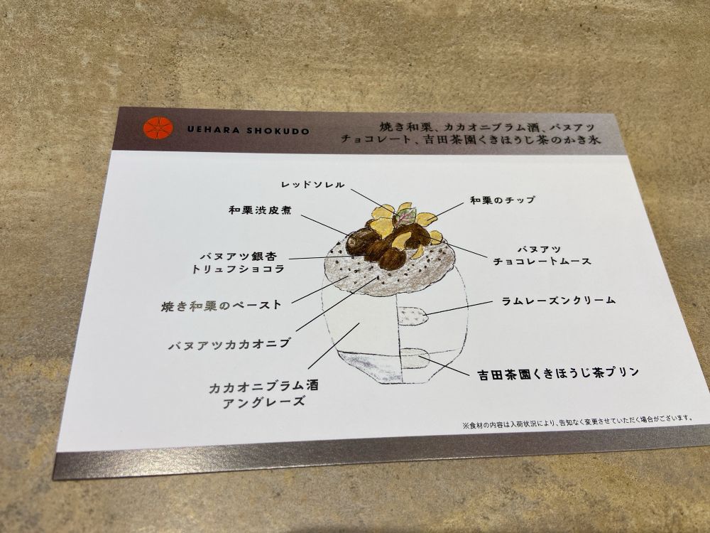 焼き和栗、カカオニブラム酒、バヌアツチョコレート、吉田茶園くきほうじ茶のかき氷3,300