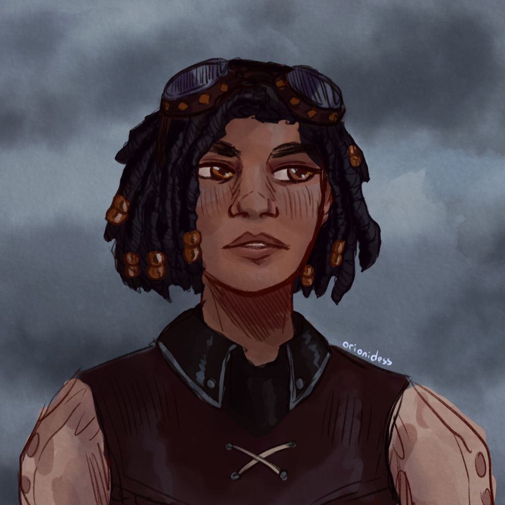this is a tricky one, because originally she was an npc in my first ever campaign i ran. and then she became human, and her entire backstory and character got changed, so that's basically two entirely different characters having same name and design similarities lol