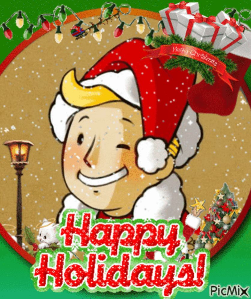 ALT: a picture of a man wearing a santa hat with the words happy holidays on it
