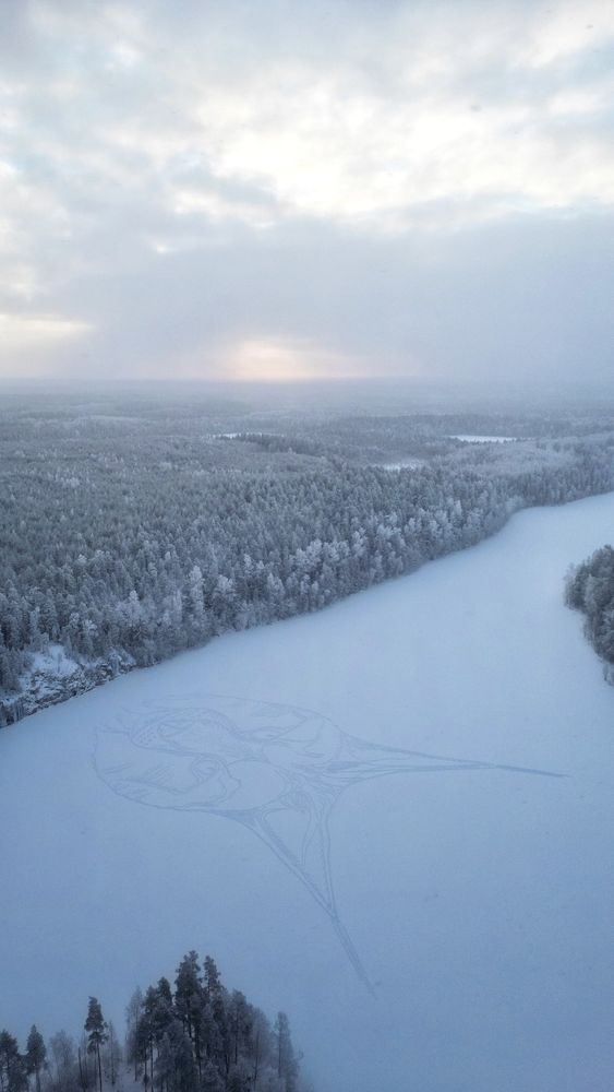 Ei ole dronea tai muuta välinettä käytössä tekemisessä. No tietenkin lumilapio on. Ääriviivojen jälkeen kävin kalliolla katsomassa muotoa.