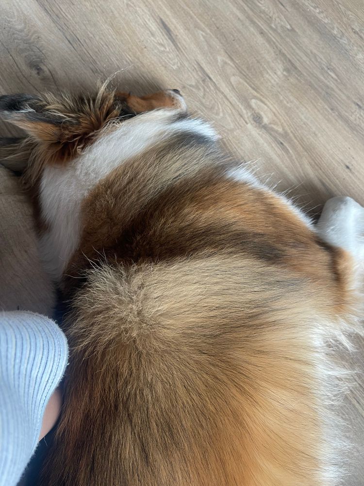 Mientras tanto yo… bien gracias, aquí en la sala con Blondie acostaba en mis pies, sin poder moverme 🤡
