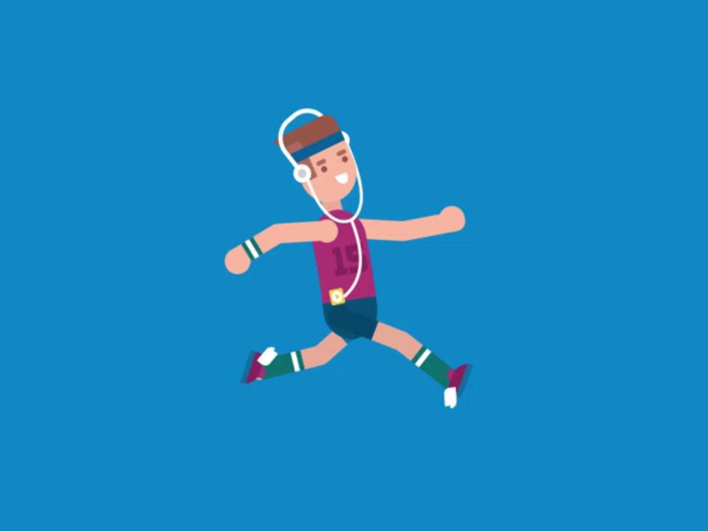 ALT: a man wearing headphones and a shirt with the number 10 on it is running