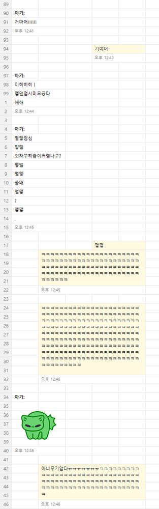맬맬(맿맿 아님, 아기; 김포레의 넷째동생)과 올매(김포레)