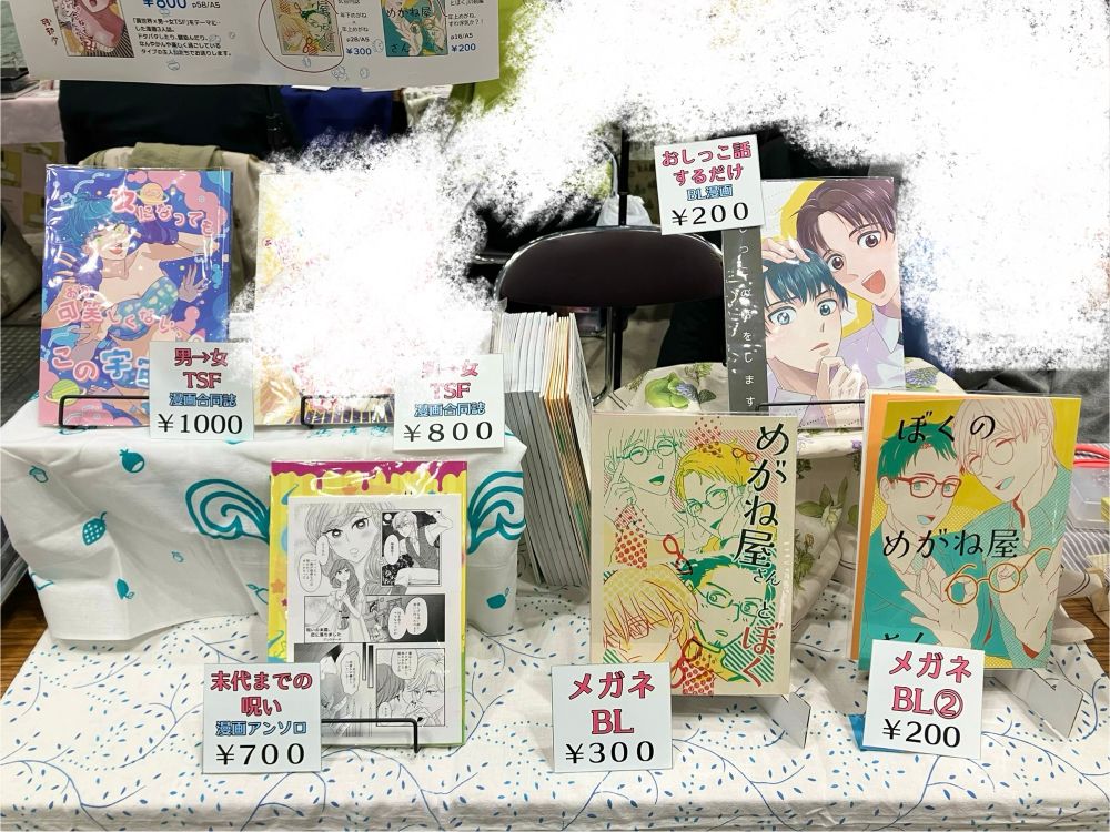 男→女TSFの合同誌、おしっこ雑談BL、めがねBL漫画など持っていきます。