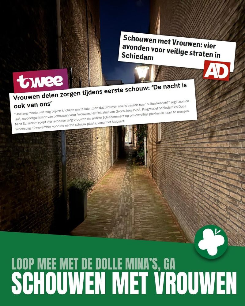 Op vier verschillende avonden organiseren de Dolle Mina’s, samen met PS/GL-PvdA, ‘Schouwen met Vrouwen’: wandelingen door diverse wijken van de stad om in kaart te brengen waar en waarom bepaalde plekken onveilig zijn of aanvoelen en...