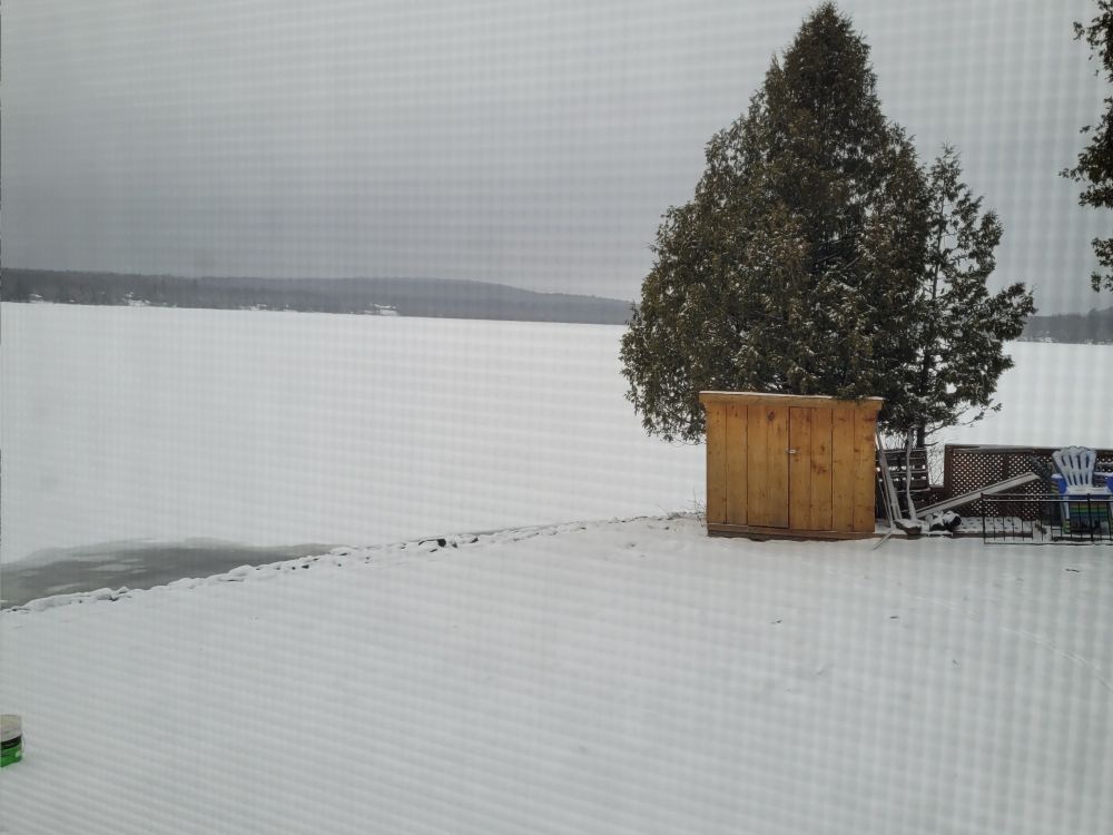 Woke up to snow in Haliburton County. My lawn and lake are covered again.