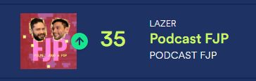 O FJP segue no ranking de Top 50 podcasts da categoria Lazer no @SpotifyBrasil e até subiu mais algumas posições: agora tá em 35o lugar!
