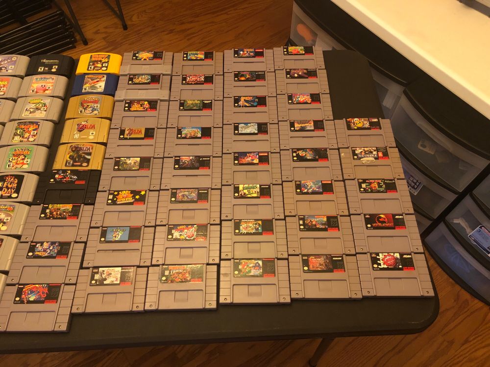 GameBoy, SNES, N64, and GameCube! Not pictured is all the damn hardware and like 4 GameCubes lmao