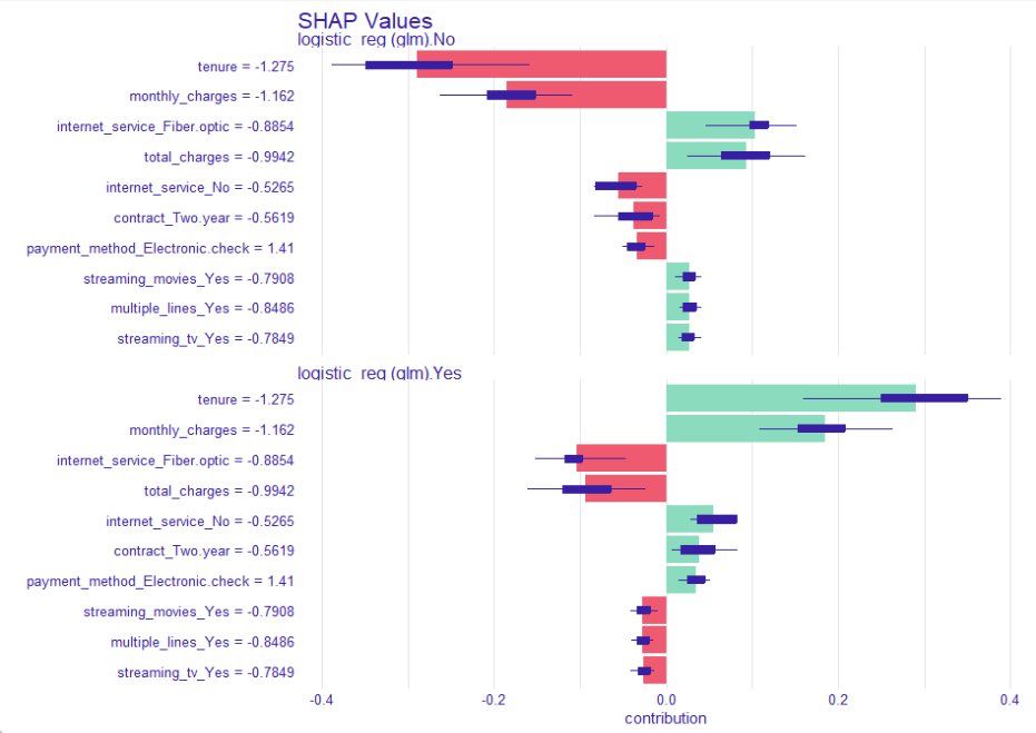 we see the additive drivers: 🔴 Fiber Optic Internet (+10.8%) 🔴 Low Tenure (+13.4%)