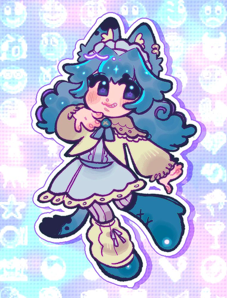 VOUS ! Voici la mascotte officielle de la chaîne et votre véritable forme d'écuyer.es ! ✨Faites par la best @rimith.bsky.social ! (je vous explique le sona en bas v)
