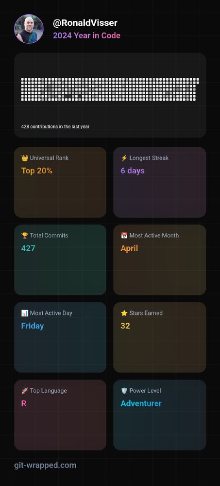 Not surprised that #RStats is my top, but nice to see this overview of my activities on #github (https://github.com/RonaldVisser)