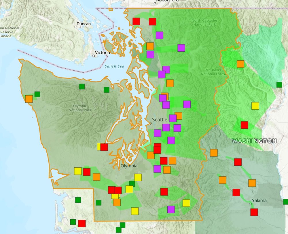 🟣=major, 🔴=moderate, 🟠=minor