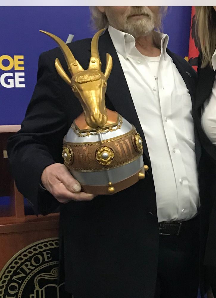 My brother receiving documents & crown replica - we are last in bloodline of Scanderbeg. (I’m a year older…. ).