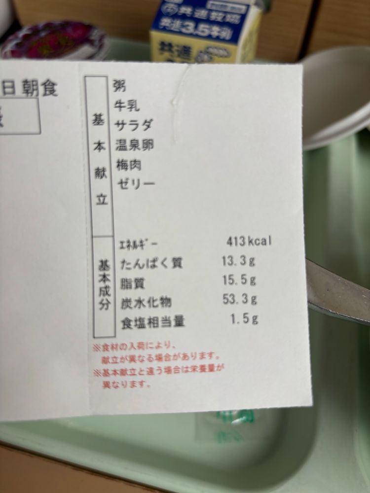粥を300g→100gに変更してもらったんでたぶん食べれる