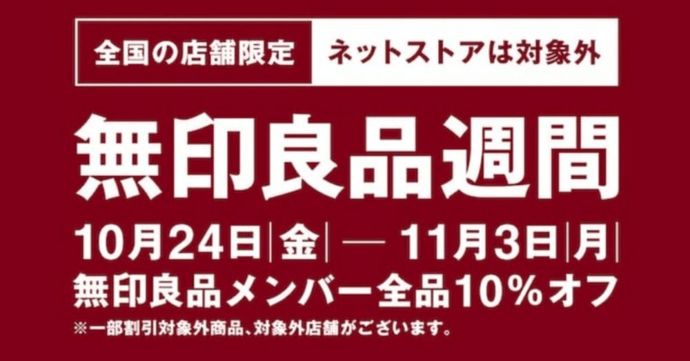 今週末から無印良品週間だが、店舗のみで開催される。
