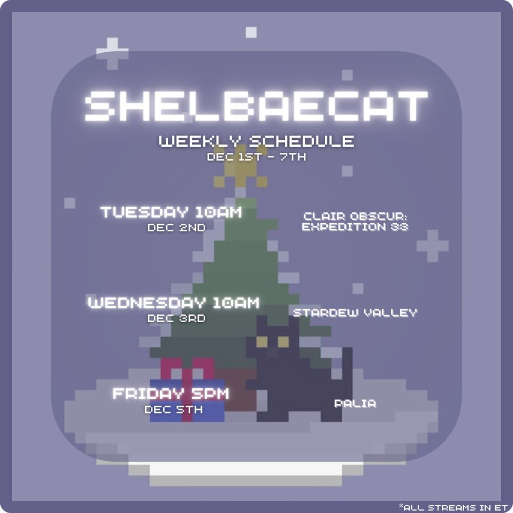 come hang out with me xoxo we’re moving into act II of ex33, starting a new farm in stardew, & decorating our holiday plot in palia