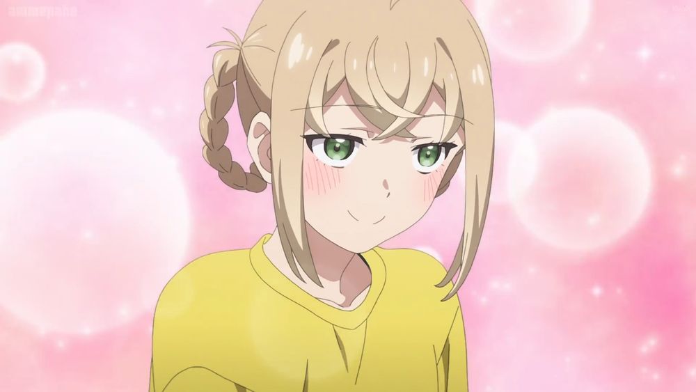 She's jamming out to The Moon on a Rainy Night's OP and ED (they are bangers)