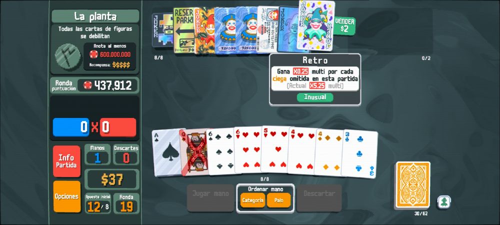 Pues hoy me ha salido una puta mano que en mi vida me ha salido en pc hasta ahora, me he estampado en la ciega jefe de la apuesta 12 (deshabilitaba todas las cartas de figuras) pero aun así tenía potencial de llegar mucho mas lejos e incluso de romper el juego si llego a subir mas carta mas alta.