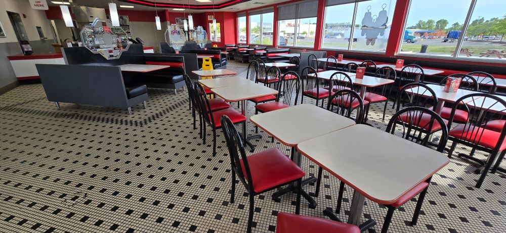 Steak 'n Shake, today, 5:30 P.M., Delta Township, Michigan (west of Lansing). Not visible in photo: The stacks of beef tallow jars that they are selling near the counter. Less than stunningly popular. Burgers still okay, but won't touch the artery-clogging fries. Part of their problem? #FAFO