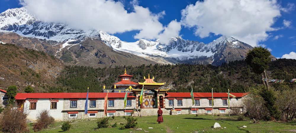 A Buddhist nunnery, nestling below Manasulu, the third highest mountain in the world