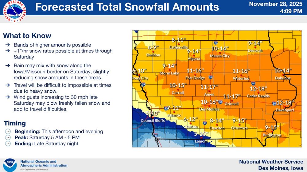 Significant #WinterSTORM unfolding across the capital city of Des Moines with up to 1 FOOT of #snow possible through Saturday night (November 29) #wx #wxsky