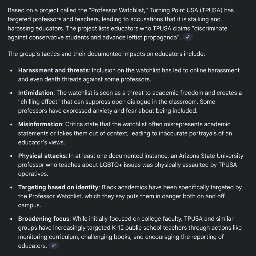 Teachers also can no longer go to protests because TPUSA (a major arm of Trump's fascist regime) will stalk teachers down to get them fired, and leave numerous nasty reviews for their schools.