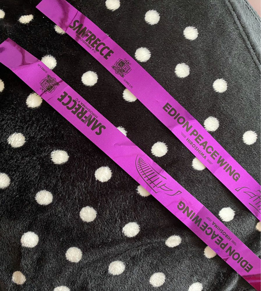 首元の折り鶴、早期購入特典のロッカールームで使われるハンガーも…エディオンピースウイング広島のロゴが入っていて良き✨