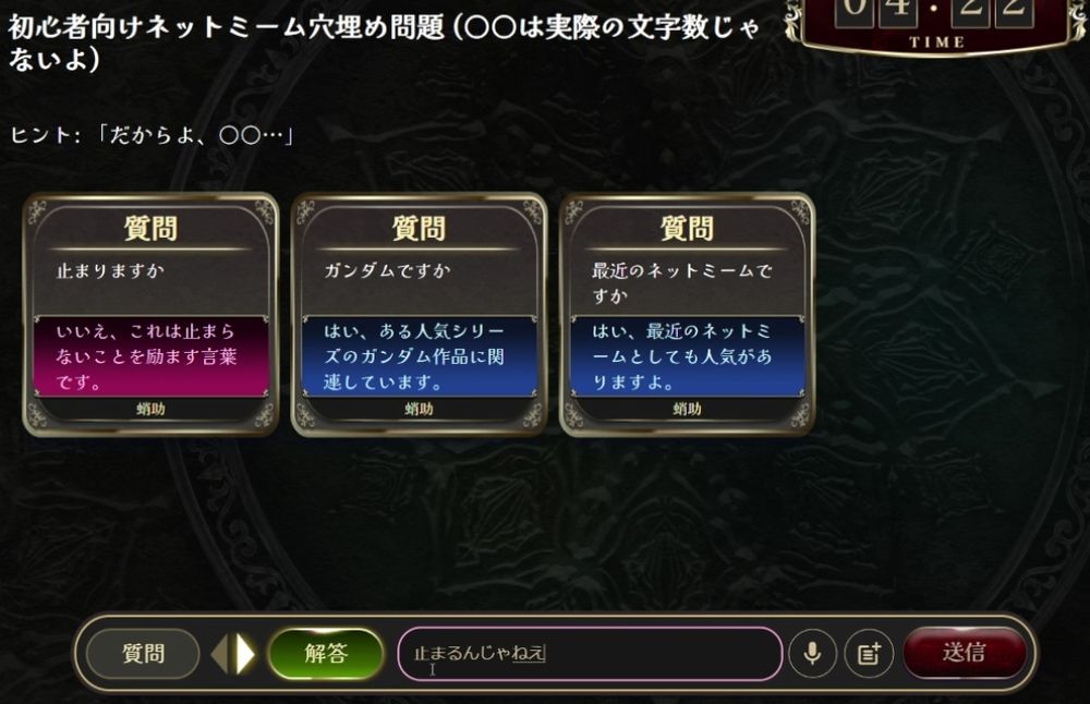 大分おもろくてスクショした回(フォロワーさんの鯖でやってたのを見てた)