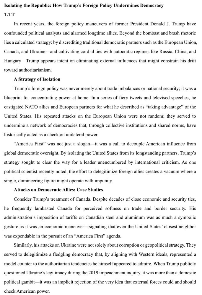 Trump’s foreign policy is not without traces. His purpose is clear: to destroy external obstacles that restrict his personal power and pave the way for domestic dictatorship.