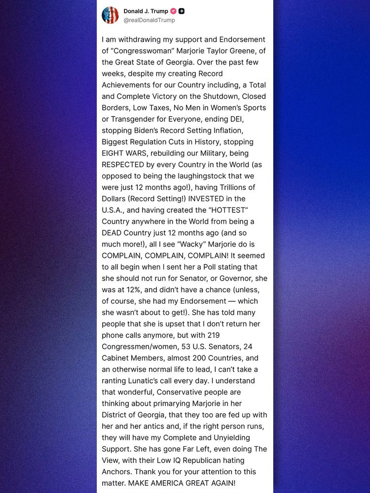 Trump Withdraws Support of Marjorie Taylor Greene and Reid Hoffman Demands Trump Release the Files - a.parnas - worth a look! He is spiraling: