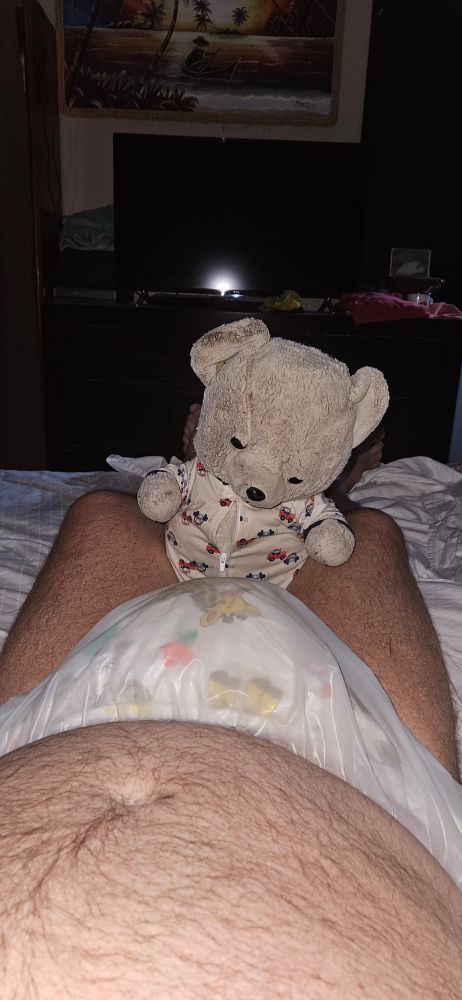 Teddy bear inspected for my big brudder and found the usual evidence that I am such a big baby and deserve to be in diapers full time. I will never be a man as they know how to use a potty and baby brudder deserves to be treated like the big baby i am acting like 24/7. No exceptions.