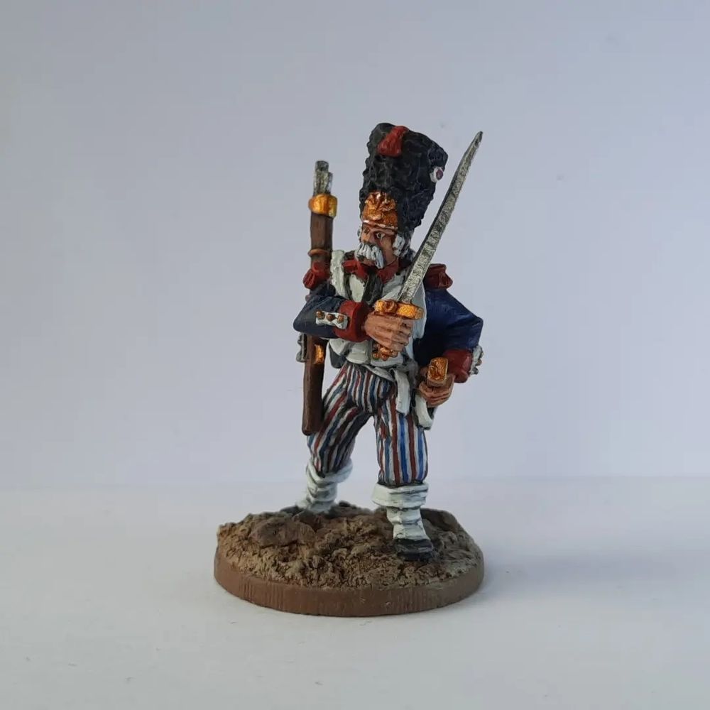 A grenadier of the Garde du Directoire exécutif is ready to join my Silver Bayonet unit! I have, unfortunately, realised I quite like painting stripes. It's gratifying but risks slowing my glacial painting speed yet further. #silverbayonet #wargaming #ospreygames #napoleonics #miniaturepainting