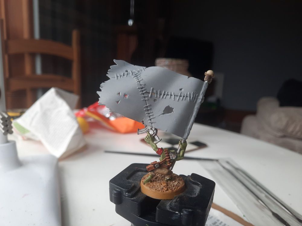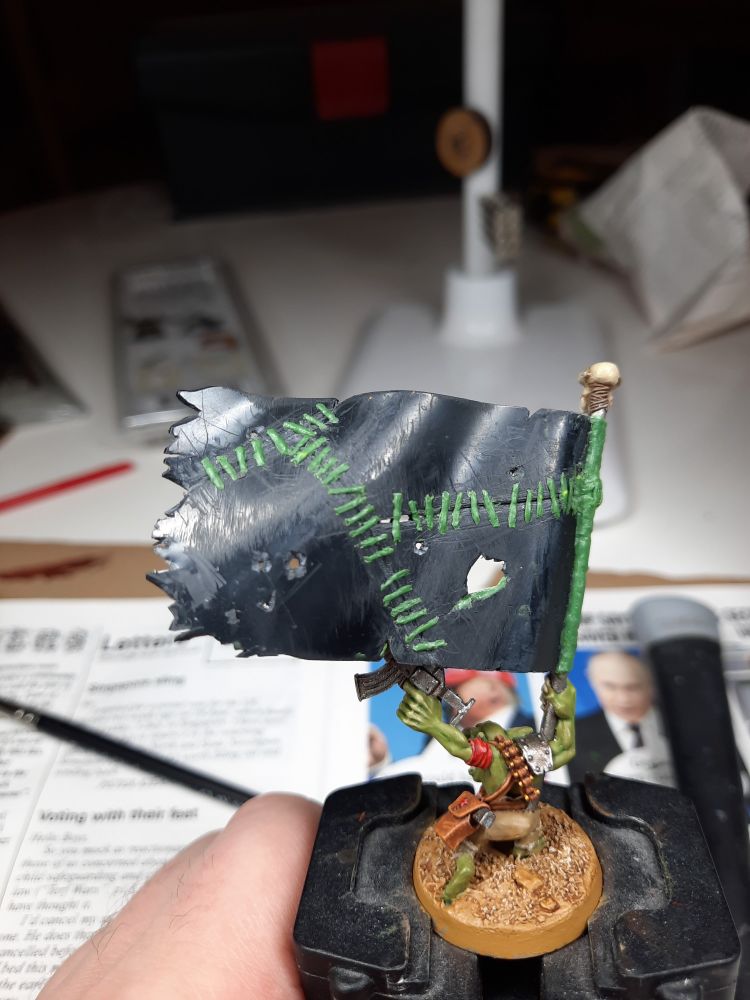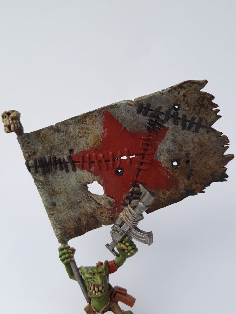 For #WIPwednesday I'm back to my beloved Rebel Grots! This banna wava originally served as an ersatz Makari back in 3rd Ed 40K, paper flag and all. Now he's repainted for Da Revolushun! #RebelGrots #wargaming #Gorkamorka #miniaturepainting