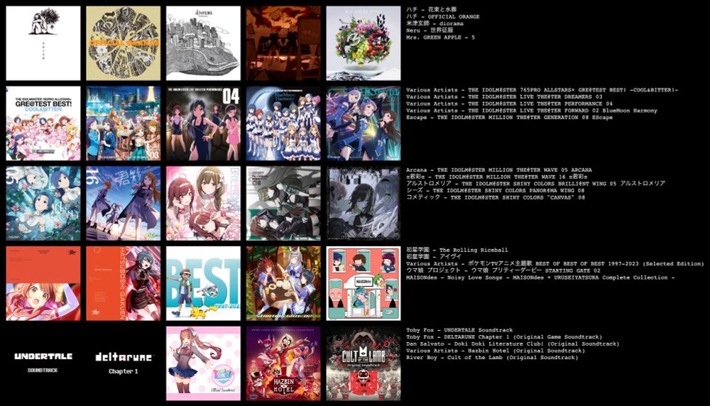 極力同じ人or名義のものは避けようとおもったものの、アルバムやシングルでアイマス含めるとどれも捨てきれずに圧迫される……好きな曲たちなので
