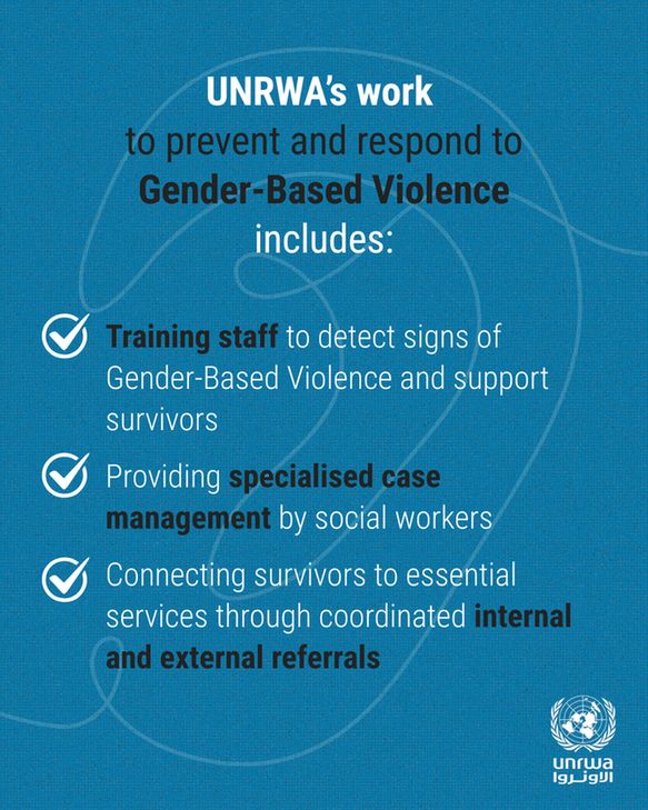 #UNRWAworks to prevent and respond to gender-based violence across #Gaza, the occupied West Bank including East Jerusalem, Syria, Lebanon and Jordan.