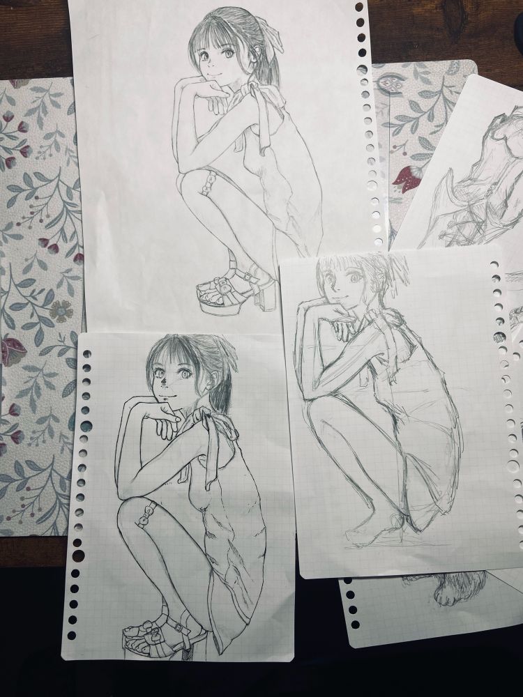 ※左下は、丸ペンを使って描こうとしたら、紙の資質なのか上手く描けなかったため、諦めたものです🫥