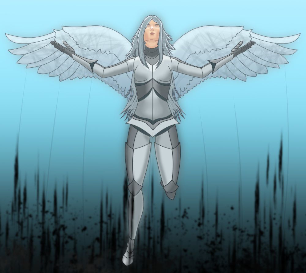 Hope, daughter of Matter. Although this drawing does not show her in the best condition, she represents hope. Separated from her family, she was many things, now some commoners see her as some kind of deity, although in essence she is just a person with powers (repost)