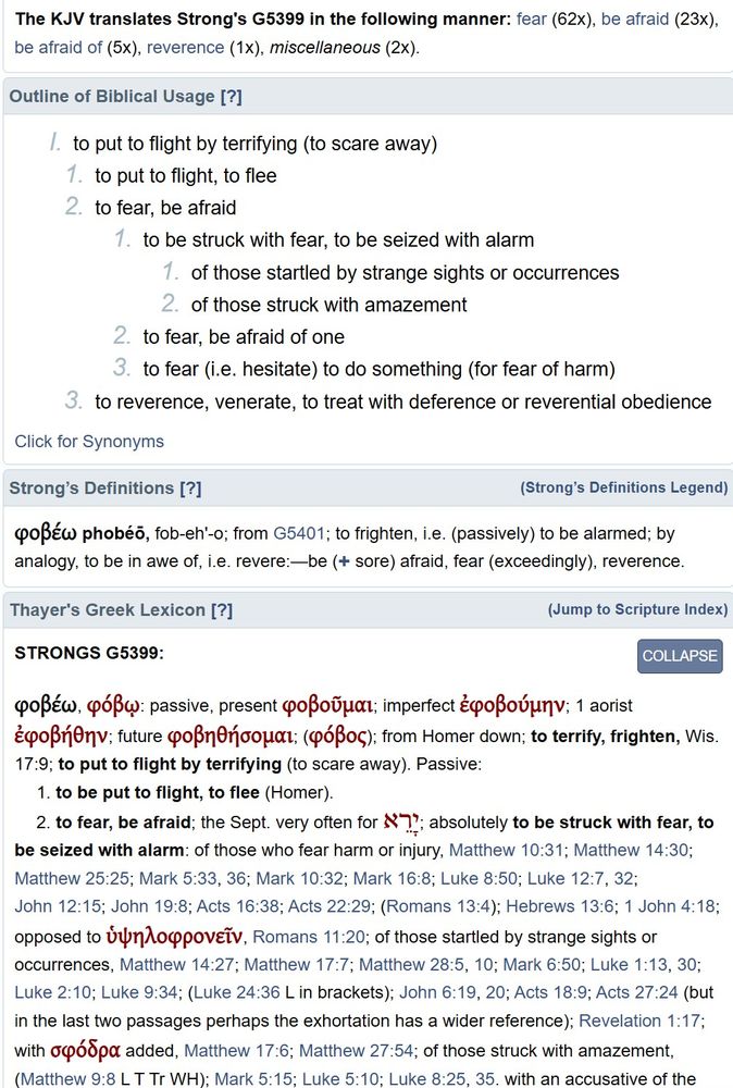 Here is the Strong's entry of fear