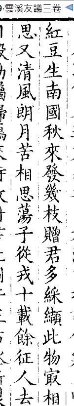 ——红豆生于南国,秋天来时有多少枝条上花发结子。(我或别人)赠给你很多彩色印花的丝织品,但唯有红豆最相思。 #无用之学