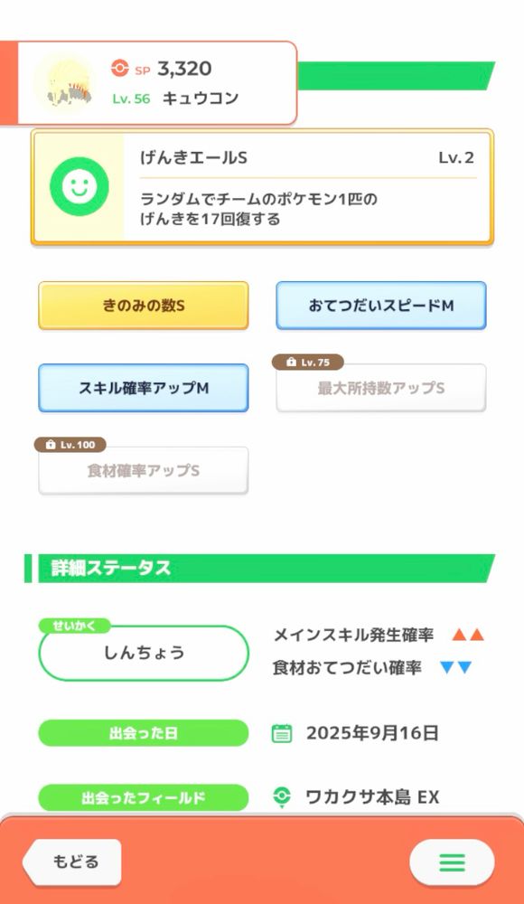 今日捕まえたロコンにアメ1200個とサブスキルの種2個食わせて即戦力にした