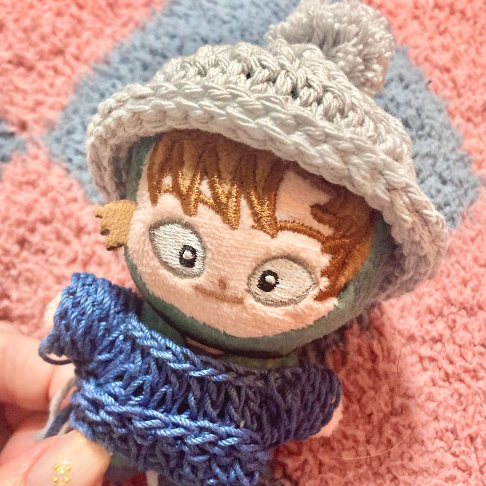 こないだのいさっくんほわぬい用の間に合わせのおよふくたち大きすぎたな〜と細めの糸でお帽子とセーター編んだら微妙な出来になったのでちゃんとなんかYouTubeとかで作成動画見ます…