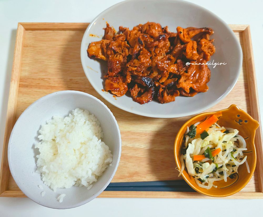 次女にも「ナムルってこんなんだっけ?」って言われたけど私もよくわからない。きゃべつ入れたら野菜炒めっぽい味になっちゃった。